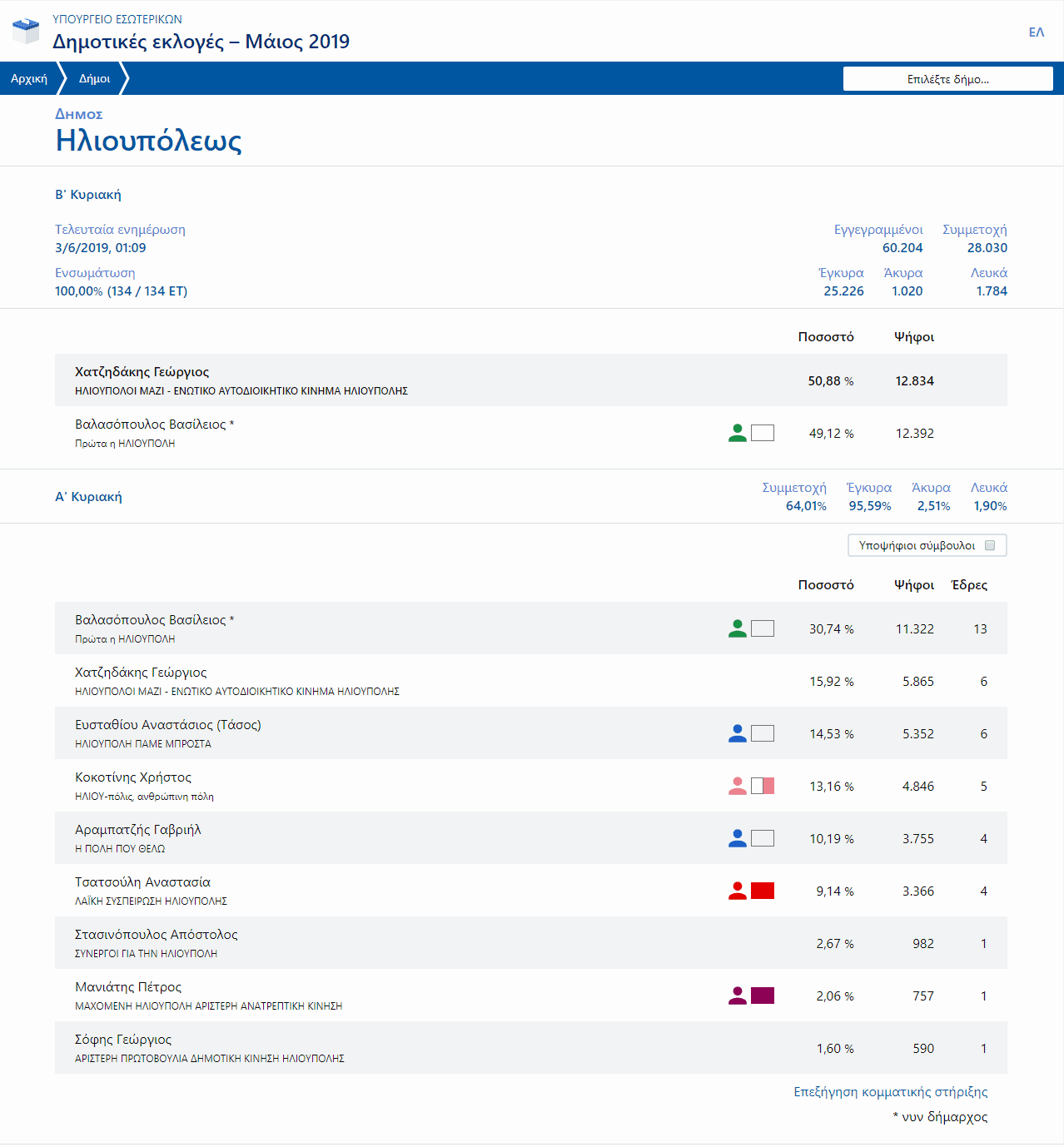 Δήμος Ηλιουπόλεως Δημοτικές εκλογές – Μάιος 2019