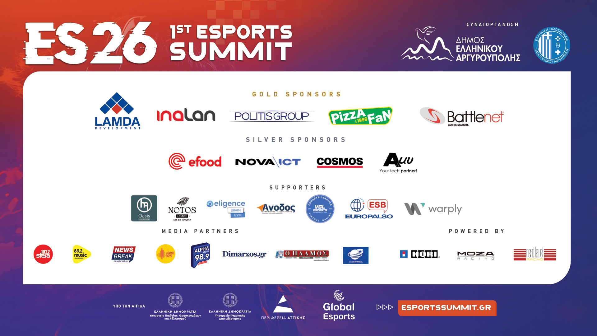 Το ESPORTS SUMMIT αποτέλεσε μια συνδιοργάνωση του Δήμου Ελληνικού – Αργυρούπολης και της Ελληνικής Ομοσπονδίας Ηλεκτρονικού Αθλητισμού, υπό την αιγίδα του Υπουργείου Παιδείας, Θρησκευμάτων και Αθλητισμού, του Υπουργείου Ψηφιακής Διακυβέρνησης, της Περιφέρειας Αττικής και της Παγκόσμιας Ομοσπονδίας Ηλεκτρονικού Αθλητισμού.