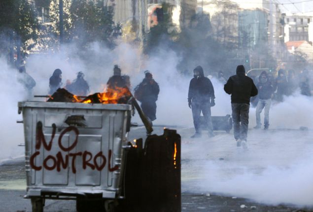 Ακολουθεί μια ακόμη μέρα πύρινων οδοφραγμάτων, πετροπόλεμου και πυρπολήσεων τραπεζών και καταστημάτων.