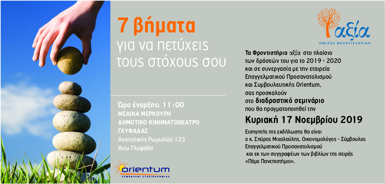 O Όμιλος Φροντιστηρίων “αξία” σε συνεργασία με την εταιρεία επαγγελματικού προσανατολισμού “orientum” σας προσκαλούν στο διαδραστικό σεμινάριο με θέμα :
