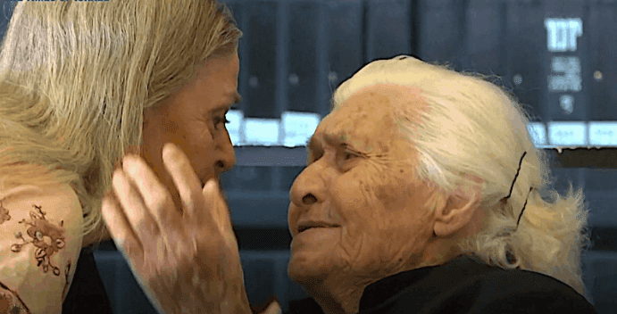 The emotional encounter was arranged by the organization “Righteous Among the Nations,” which awards Israel’s highest honor to those non-Jews who risked their lives to save Jews during the Holocaust.