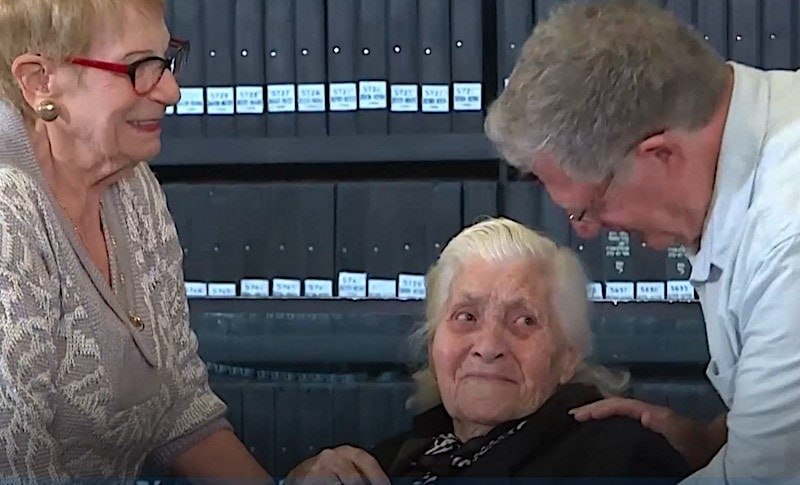 92-year-old Melpomeni Dina, from the town of Veria in northern Greece, met for the first time on Sunday in Jerusalem the descendants of a Jewish family she helped save during the Holocaust.