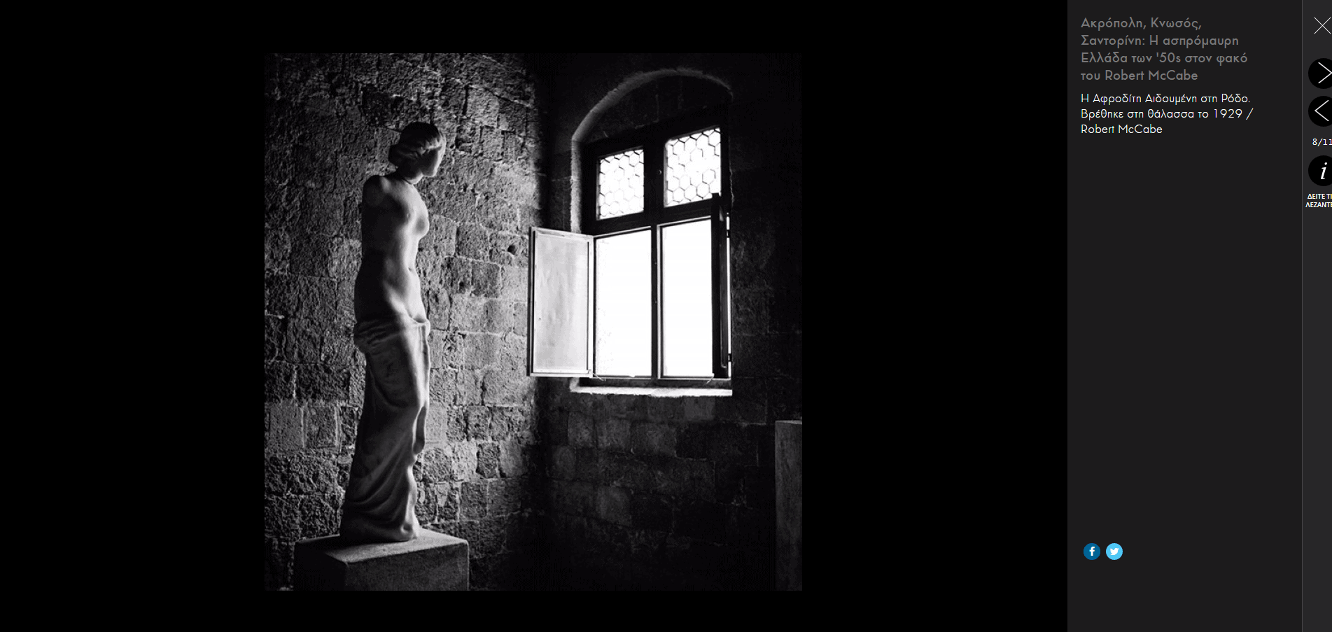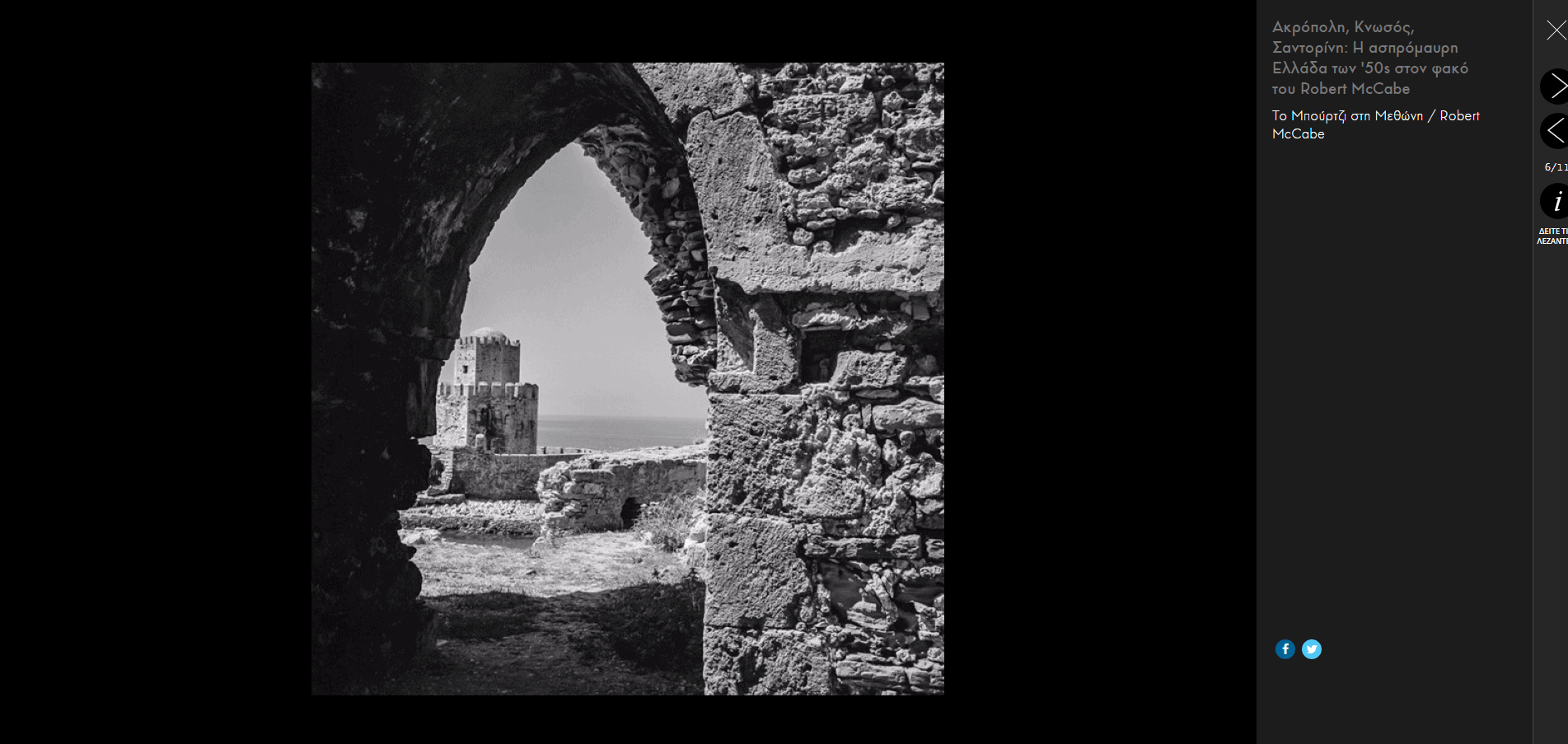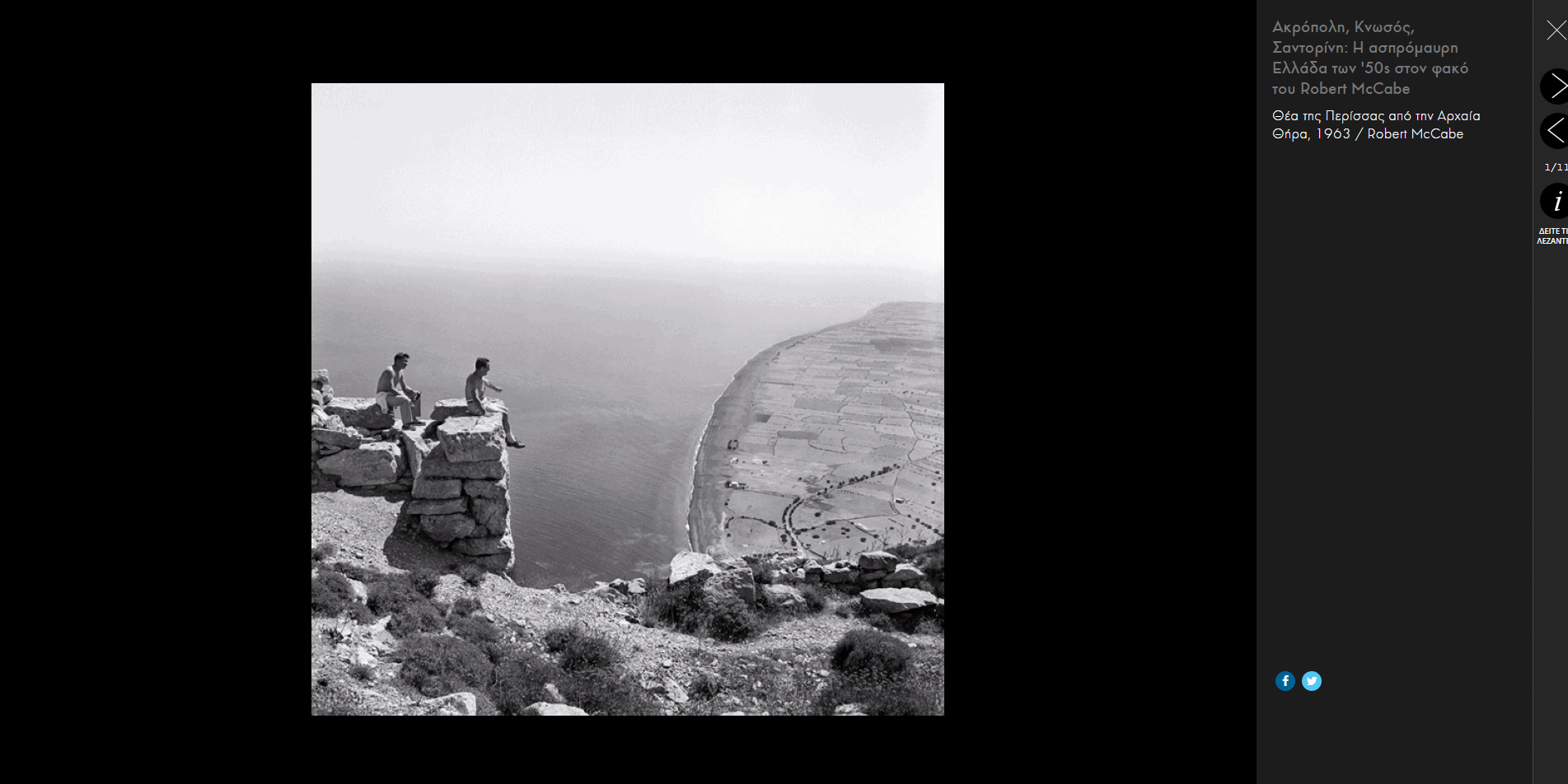 Πρόκειται για μια περιεκτική παρουσίαση που μεταφέρει τον θεατή στην Σαντορίνη πριν από τον σεισμό τον 1956, στην Επίδαυρο πριν από την αποκατάσταση του αρχαίου θεάτρου και στην αρχαία αγορά των Αθηνών πριν από την πλήρη ανάδυσή της από το έδαφος. Κατά τη διάρκεια της έκθεσης θα υπάρξουν ξεναγήσεις από τον ίδιο τον φωτογράφο, τις δημοσιογράφους Κατερίνα Λυμπεροπούλου και Μαργαρίτα Πουρνάρα, καθώς και μια ζωντανή συζήτηση με τον Robert McCabe για τις μοναδικές εμπειρίες του φωτογράφου στα πρώτα του ταξίδια στην μεταπολεμική Ελλάδα. Οι ημερομηνίες θα ανακοινωθούν στο προσεχές διάστημα.