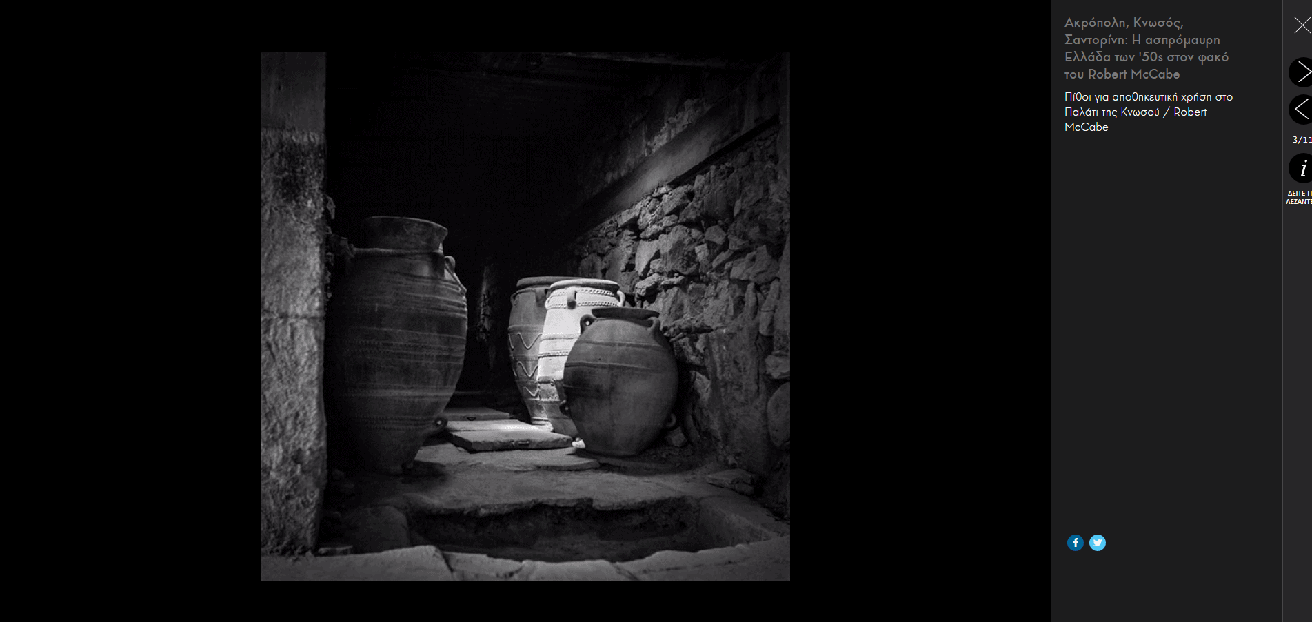 Ο Robert McCabe ήταν φοιτητής στο πανεπιστήμιο Princeton όταν πρωτοεπισκέφθηκε την Ελλάδα το καλοκαίρι του 1954. Οι άνθρωποι, τα μνημεία και τα τοπία άσκησαν τέτοιο μαγνητισμό στο βλέμμα τον νεαρού, που επισκέφθηκε τα πιο δυσπρόσιτα μέρη, χρησιμοποιώντας κάθε μεταφορικό μέσο. Την επόμενη χρονιά, επέστρεψε για να συνεχίσει την εξερεύνησή του σε μια χώρα αγνή -μαζικός τουρισμός δεν υπήρχε ακόμα- με ανθρώπους φιλόξενους και ολιγαρκείς. Πίθοι για αποθηκευτική χρήση στο Παλάτι της Κνωσού / Robert McCabe