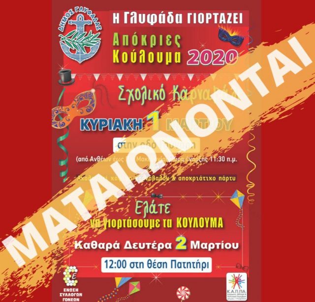 ΑΚΥΡΩΝΟΝΤΑΙ οι εκδηλώσεις για τις Απόκριες και τα Κούλουμα στην Γλυφάδα