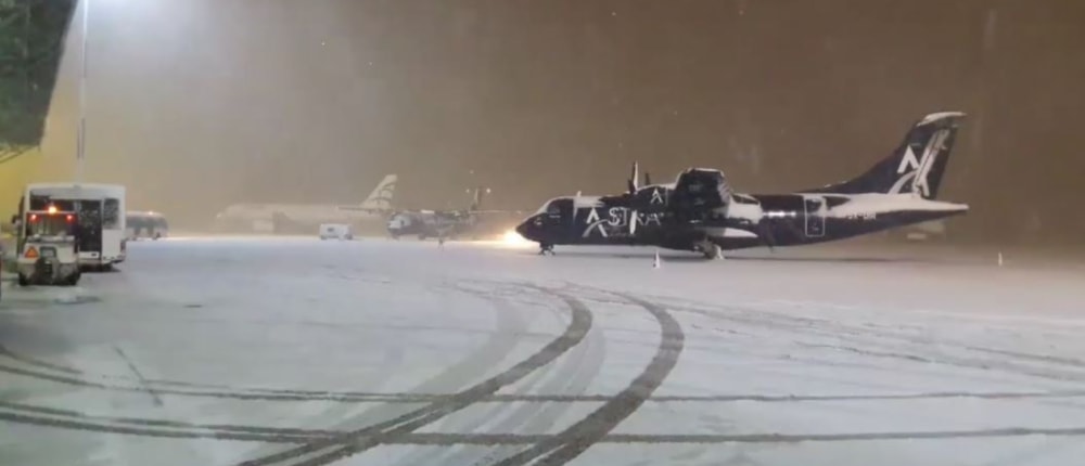 Γεμάτος με κόκκινες και κίτρινες ειδοποιήσεις, για ακυρώσεις και καθυστερήσεις λόγω της κακοκαιρίας, είναι ο πίνακας των αφίξεων και αναχωρήσεων στο αεροδρόμιο «Μακεδονία» της Θεσσαλονίκης.