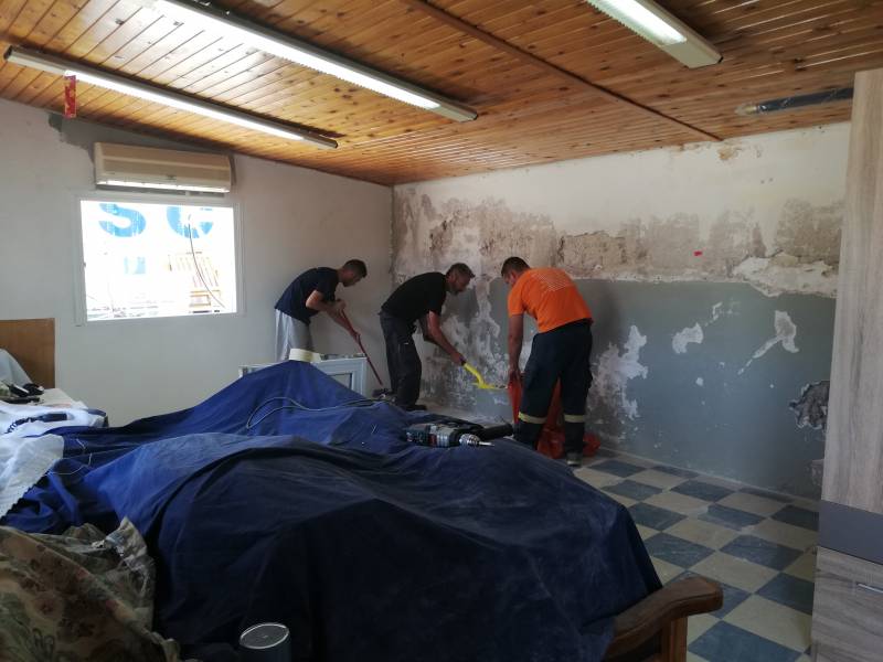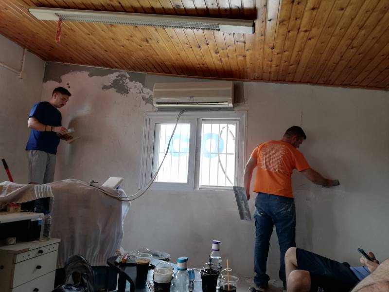 Θα ήταν ζωτικής σημασίας παράλειψη να μην αναφερθούμε στην μεγάλη και επίπονη προσπάθεια, η οποία πραγματώθηκε από τα μέλη της ομάδας στις διαδικασίες της ανακαίνισης. Είναι εκείνοι, οι οποίοι, είτε είχαν είτε δεν είχαν εθελοντική βάρδια (υπηρεσία), ερχόντουσαν καθημερινά για να σοβατίσουν, να τρίψουν, να βάψουν και να αντικαταστήσουν τον φθαρμένο, πλέον, από το πέρασμα του χρόνου πλαστικό τάπητα με πάτωμα λάμινειτ. Είναι εκείνοι που από το μετερίζι τους προσέφεραν δώδεκα εικοσάκιλα Durostick Granular Ultra, μια καινούρια πόρτα, μονωτικά και ενισχυτικά κονιαμάτων και τέσσερις εξωτερικούς προβολείς, ώστε να μετατρέψουν το σάπιο και εξαιρετικά ανθυγιεινό εσωτερικό χώρο δωματίου αλλά και τον προαύλιο χώρο, σε ένα όμορφο, φιλικό και ασφαλές περιβάλλον.