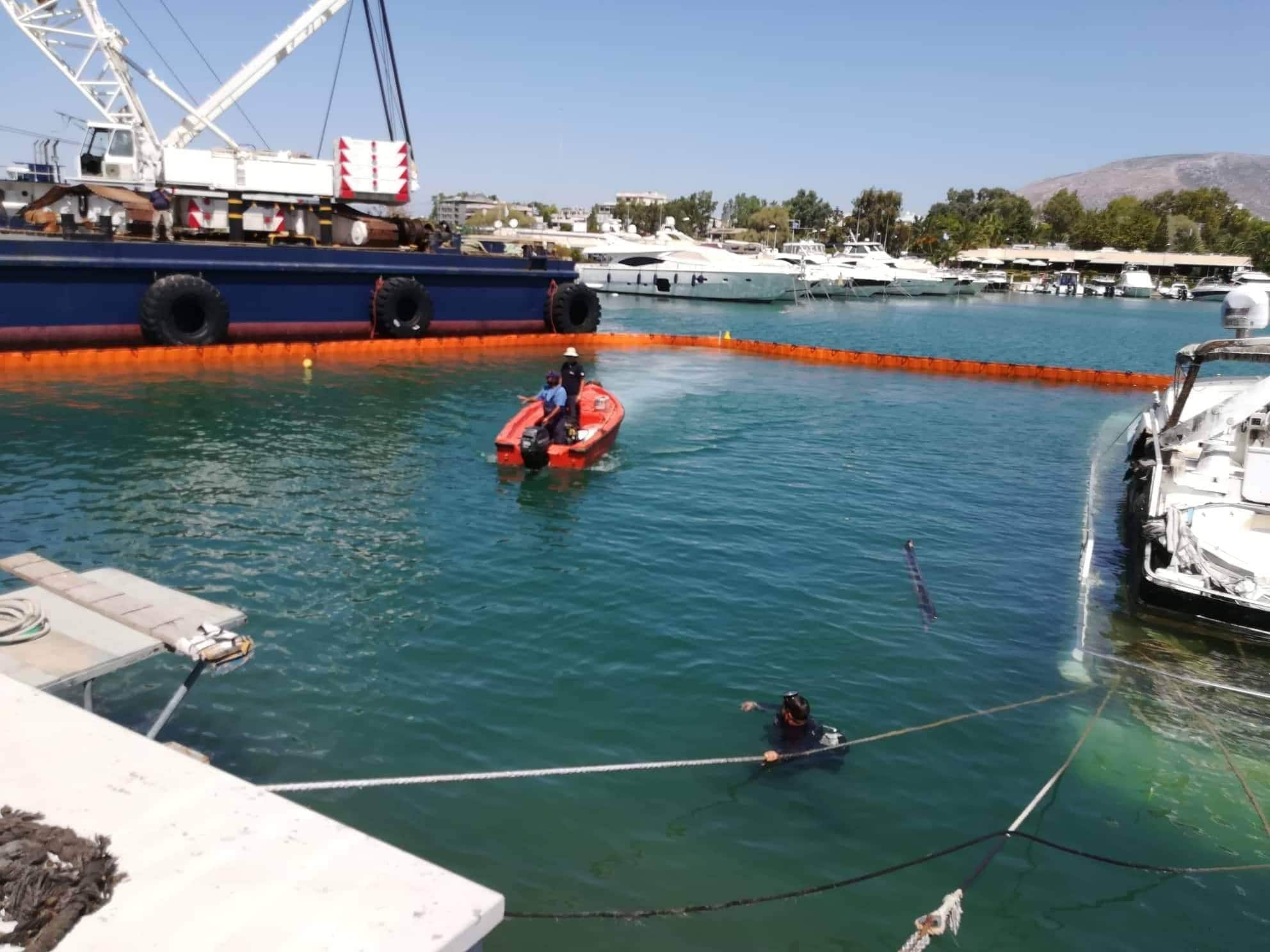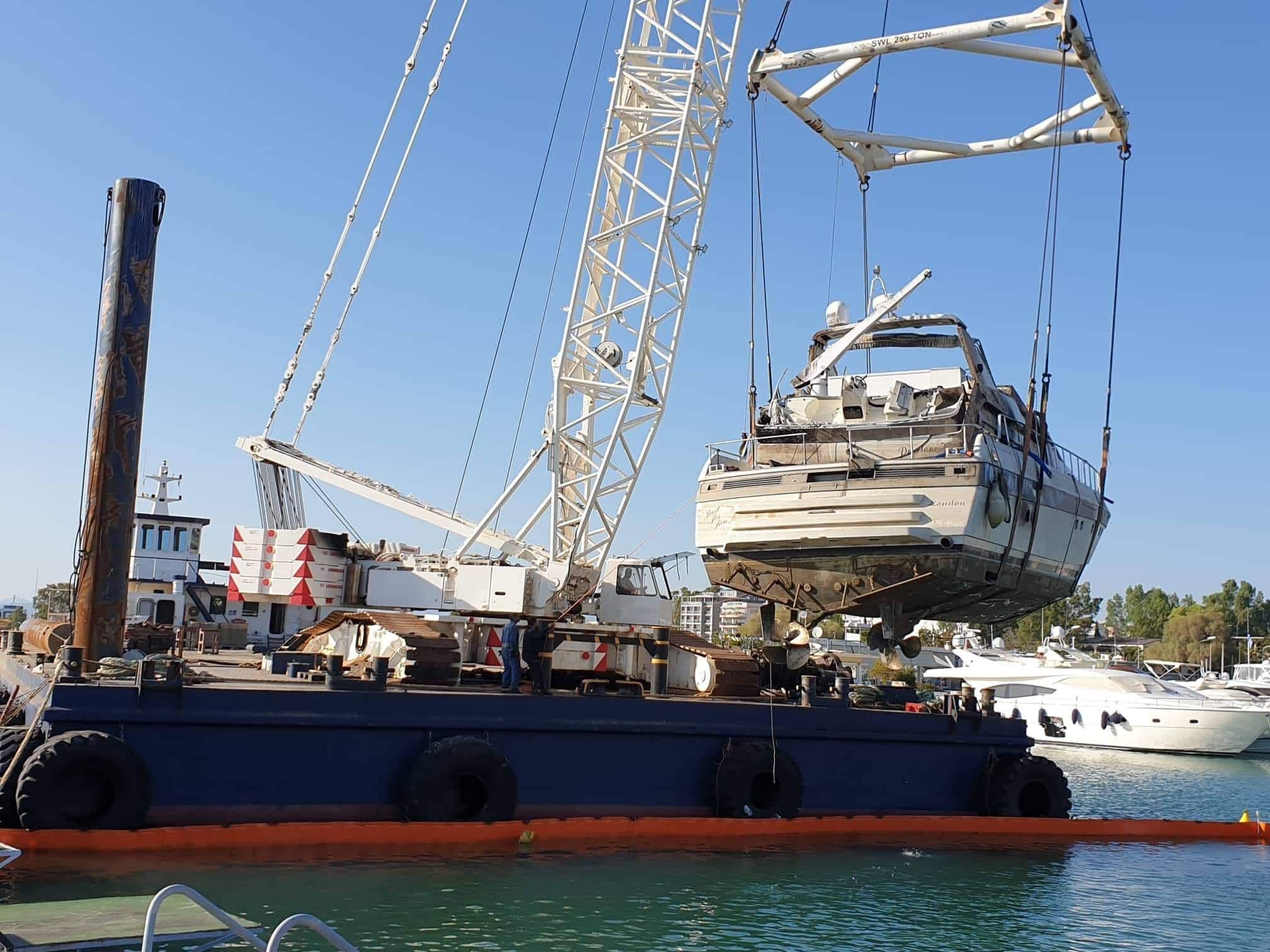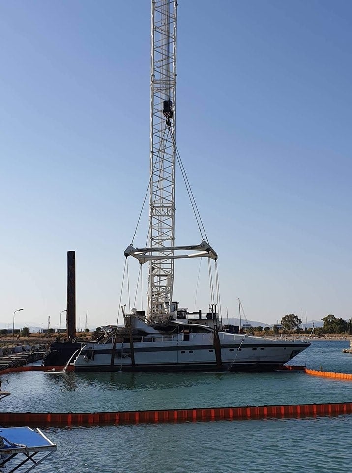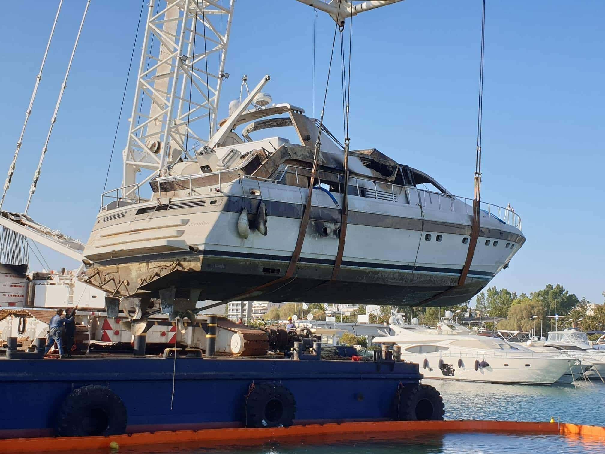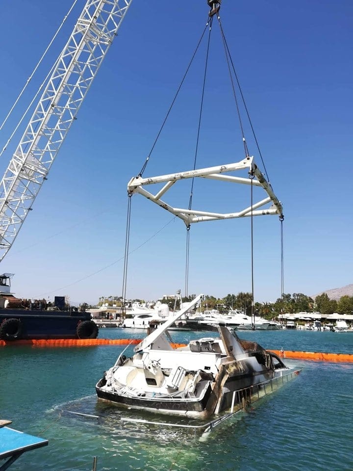 Ολοκληρώθηκε επιτυχώς η ανέλκυση και η απομάκρυνση του σκάφους που την περασμένη εβδομάδα (20/08) καταστράφηκε από πυρκαγιά* στην τέταρτη μαρίνα της Γλυφάδας.