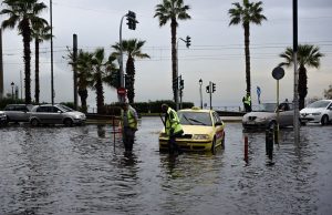 Συσσώρευση υδάτων στην Ποσειδώνος στο Παλαιό Φάληρο στο ρεύμα προς Πειραιά προκλήθηκε μετά από την έντονη βροχόπτωση. Μόνο από την αριστερή και τη μεσαία λωρίδα...