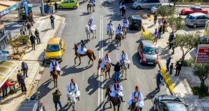Εικοσιένας έφιπποι με λάβαρα, παραδοσιακές φορεσιές και τραγούδια στους δρόμους της...