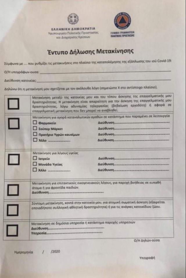 Δείτε πως θα είναι το έντυπο μετακίνησης σε περίπτωση Απαγόρευσης της Κυκλοφορίας