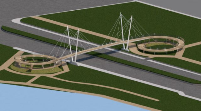 Η κατασκευή της πεζογέφυρας θα είναι σύμφωνα με τη μελέτη αρκετά πρωτοποριακή, καθώς δεν θα έχει σκάλες ή ανελκυστήρες, αλλά κυκλικές ράμπες στις δύο πλευρές της, με σχεδιασμό από γυαλί, μέταλλο και ξύλο που θα θυμίζει ιστιοφόρο.