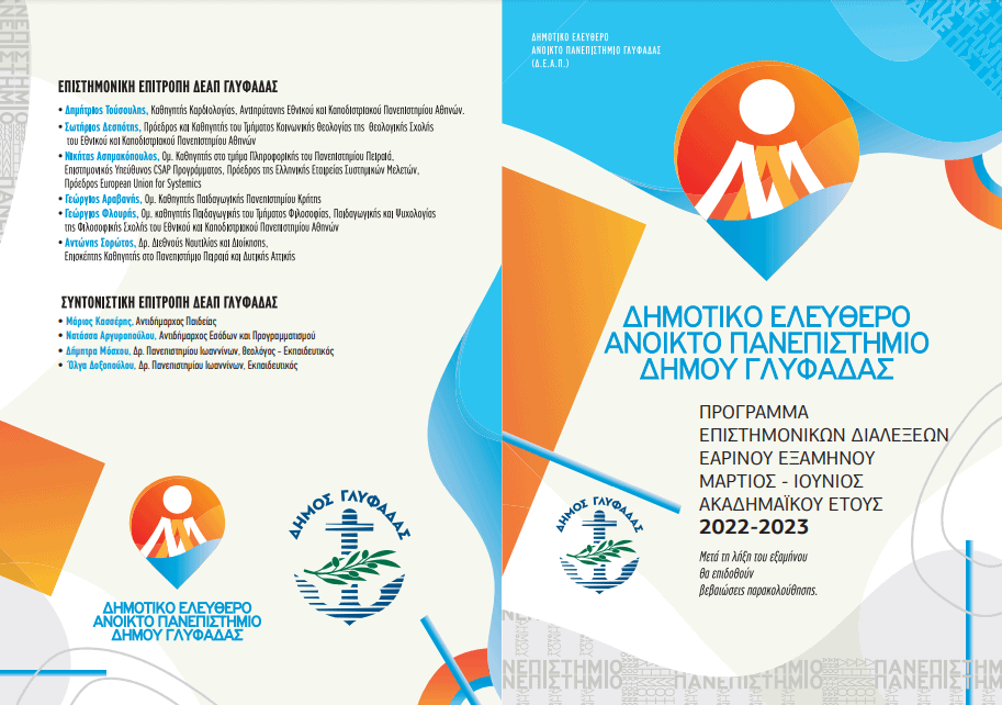 Το Δημοτικό Ελεύθερο Ανοικτό Πανεπιστήμιο (ΔΕΑΠ) του Δήμου Γλυφάδας επαναλειτουργεί ! Ύστερα από τρία χρόνια παύσης λόγω των υγειονομικών περιορισμών, ο θεσμός που τόσο αγαπήθηκε από τους Γλυφαδιώτες είναι και πάλι εδώ, με διαπρεπείς επιστήμονες, σπουδαίες διαλέξεις σε ευρεία γκάμα θεμάτων και με βεβαιώσεις παρακολούθησης που ο καθένας από τους συμμετέχοντες μπορεί να εντάξει στο βιογραφικό του.