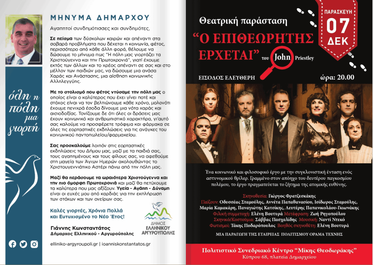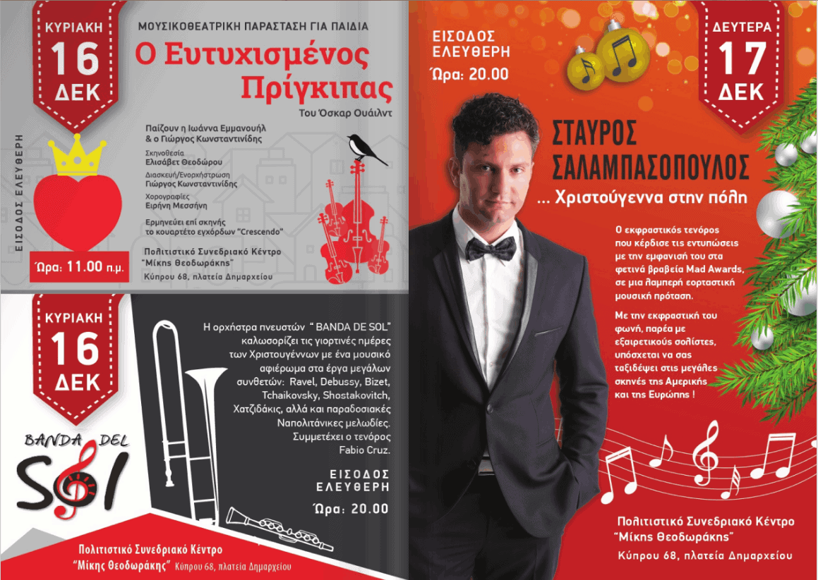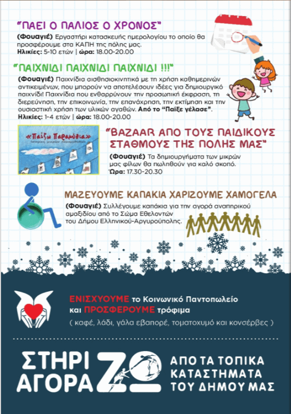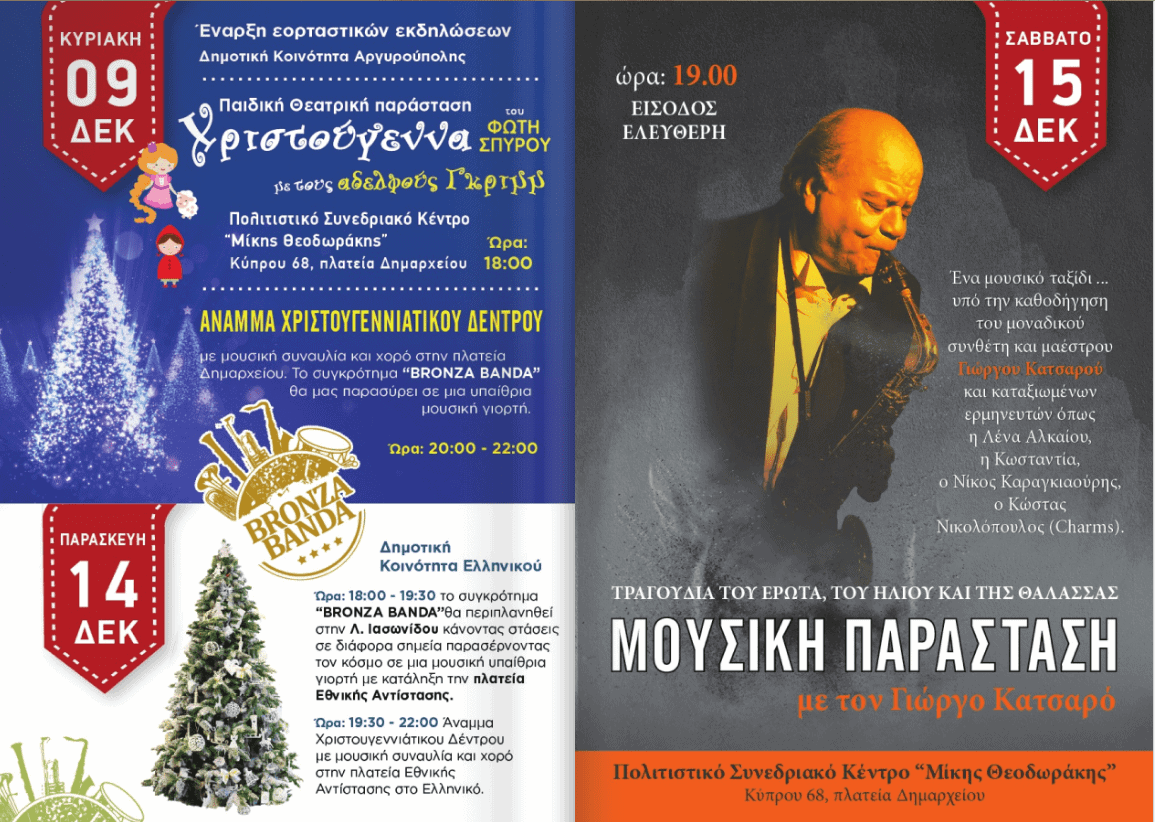 Οι Δήμοι μαςΑργυρούπολη - ΕλληνικόΔήμος Ελληνικού-Αργυρούπολης: Όλη η πόλη μια γιορτή τον Δεκέμβριο 2018Από Oi Notioi - 3 Δεκεμβρίου 2018FacebookTwitterWhatsAppLinkedinEmailΤυπώνωTelegramViber Όλη η πόλη μια γιορτή και τον Δεκέμβριο με πολλές εκδηλώσεις για μικρούς και μεγάλους!1 του 10