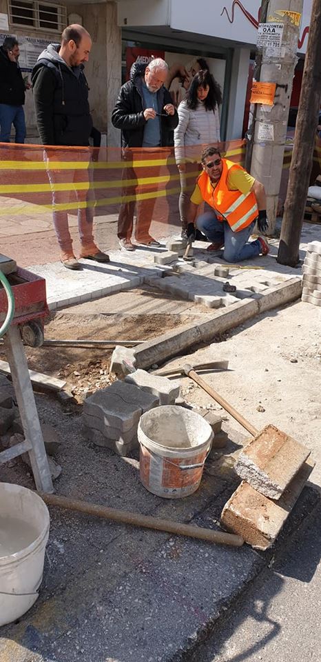 Μια ακόμα σημαντική παρέμβαση είναι σε εξέλιξη στην Λεωφόρο Ιασωνίδου με την ανακατασκευή και επανατοποθέτηση των κυβόλιθων στα πεζοδρόμια που αποτελούσε αίτημα πολλών εμπόρων και κατοίκων.