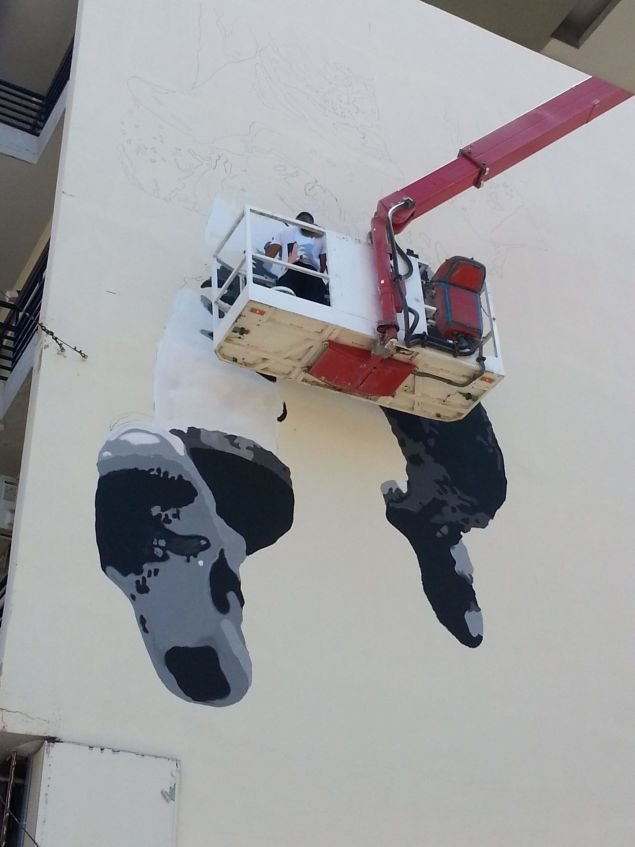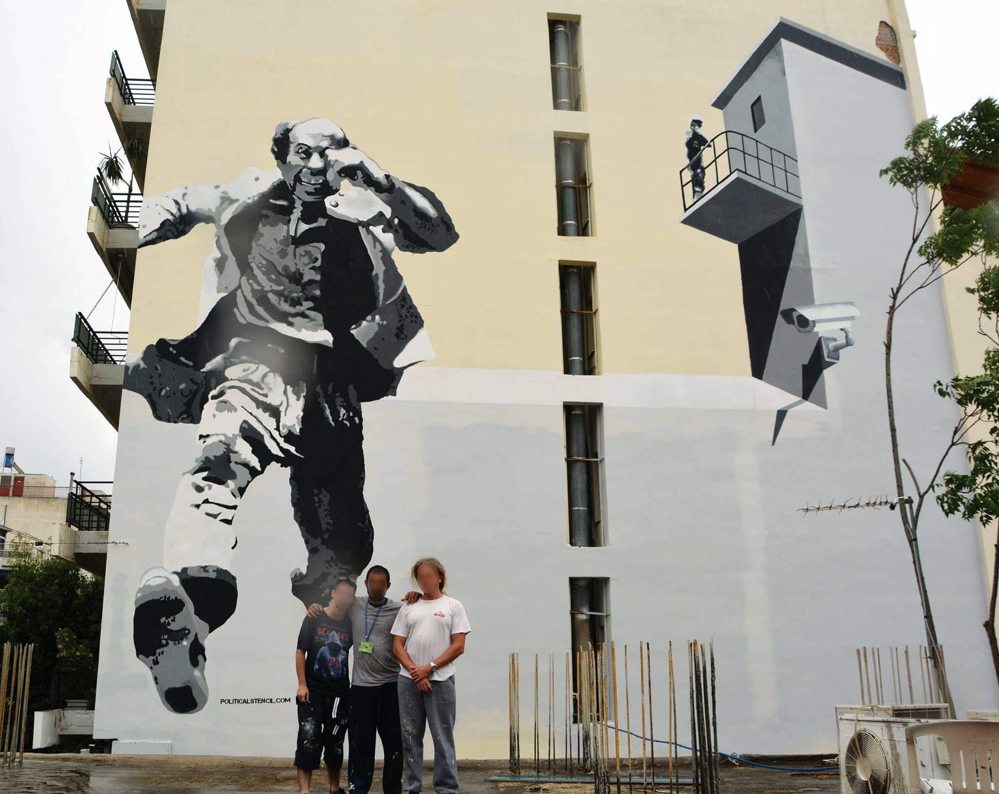 Η τοιχογραφία στην πολυκατοικία επί της Λεωφόρου Γούναρη έγινε από την ομάδα PoliticalStencil και είναι με χορηγία της Κινηματογραφικής Λέσχης Πατρών στο πλαίσιο της διοργάνωσης ArtWalk 3, Art In Progress .