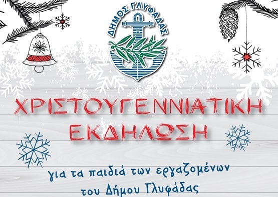 Χριστουγεννιάτικη εκδήλωση για τα παιδιά των εργαζομένων του Δήμου Γλυφάδας θα πραγματοποιηθεί σήμερα, Τετάρτη, 19 Δεκεμβρίου, με ώρα έναρξης τις 4 μ.μ., στο Διασχολικό Κέντρο του Δήμου Γλυφάδας (Επαμεινώνδα και Αγίας Τριάδος).
