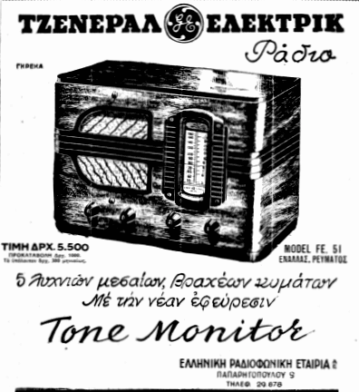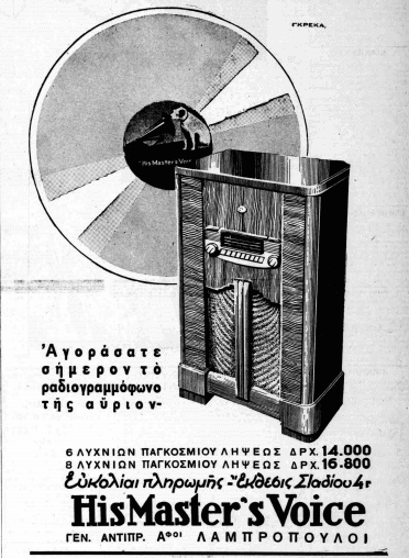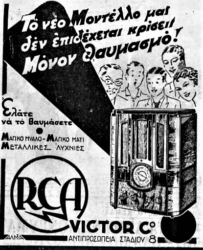 Το ραδιόφωνο ήταν πιθανότατα το πιο διαδεδομένο προϊόν, μεταξύ των ηλεκτρικών συσκευών, στην Ελλάδα της δεκαετίας του ’30. Πληθώρα διαφημίσεων και μοντέλων για το μοναδικό, εκείνη την εποχή, οικιακό μέσο ψυχαγωγίας.