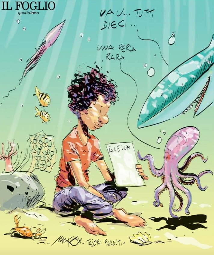 Η ιατροδικαστής συγκλονισμένη από την ιστορία του αγοριού αλλά και από άλλες οικογενειακές τραγωδίες που ανακάλυψε μέχρι να αναγνωριστούν όλες οι σοροί, αποφάσισε να γράψει ένα βιβλίο το Naufraghi senza volto (Απρόσωπα ναυάγια). Ο γνωστός σκιτσογράφος Makkox έφτιαξε γι’ αυτή την ιστορία ένα σκίτσο που έχει κατακλύσει τα social media τις τελευταίες μέρες. Το σκίτσο δείχνει το 14χρονο αγόρι από το Μάλι καθισμένο στο βυθό της Μεσογείου να δείχνει τον έλεγχό του σε ένα χταπόδι και έναν καρχαρία και εκείνα να του δίνουν συγχαρητήρια για τους βαθμούς του.