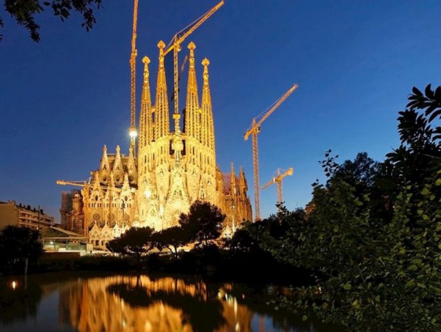 Η ρωμαιοκαθολική βασιλική του Αντόνι Γκαουντί στη Βαρκελώνη, ένα από τα ψηλότερα θρησκευτικά κτίρια στον κόσμο που φημίζεται για την περίτεχνη αρχιτεκτονική του. Μετά από 130 χρόνια, η εκκλησία και οι 18 περίτεχνα σκαλισμένοι πύργοι της Σαγράδα Φαμίλια θα ολοκληρωθούν το 2026, έναν αιώνα μετά τον θάνατο του Ισπανού αρχιτέκτονά της.