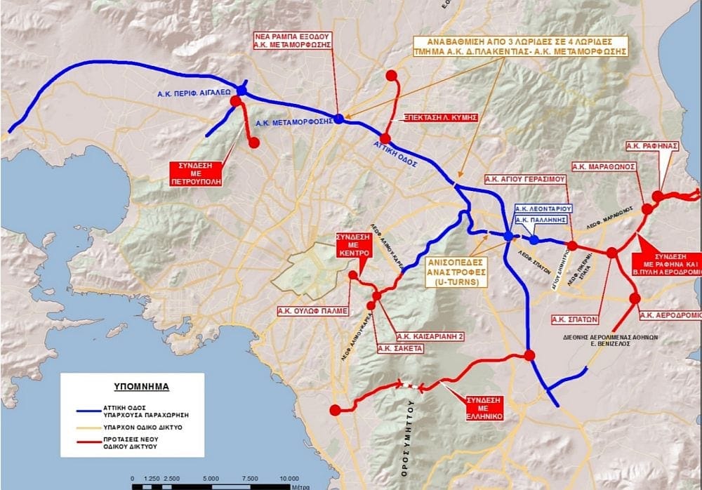 - -Την αύξηση από 3 σε 4 λωρίδες στο κεντρικό τμήμα της Αττικής Οδού (προφανώς μιλά για το τμήμα Μεταμόρφωση-Δ.Πλακεντίας).