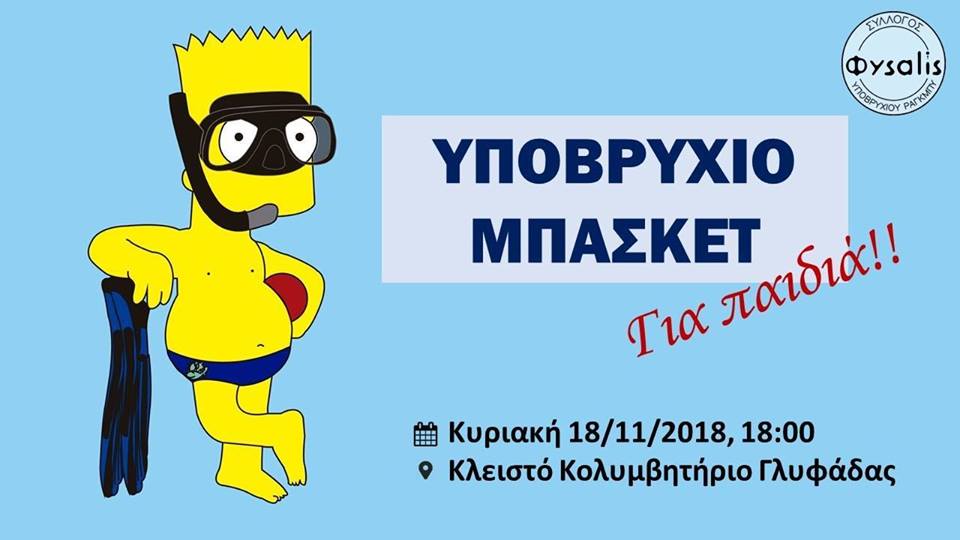Ο σύλλογος ΦΥΣΑΛΙΣ διοργανώνει επίδειξη ΥΠΟΒΡΥΧΙΟΥ ΜΠΑΣΚΕΤ για παιδιά και νέους ηλικίας από 12 ετών και άνω.