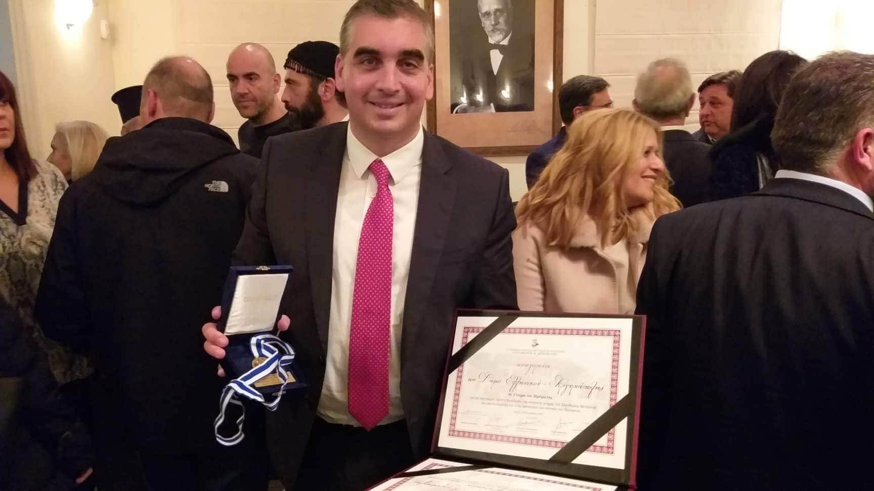 Την τιμητική διάκριση απένειμε στον Δήμαρχο Ελληνικού – Αργυρούπολης Γιάννη Κωνσταντάτο ο βουλευτής του ΣΥΡΙΖΑ Αντώνης Μπαλωμενάκης.