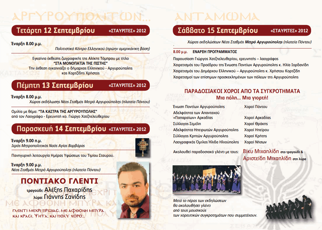 Η Ένωση Ποντίων Αργυρούπολης σας προσκαλεί στο Ετήσιο Αντάμωμα Αργυρουπολιτών που θα πραγματοποιηθεί από τις 12 έως τις 16 Σεπτεμβρίου στην πλατεία Πόντου.