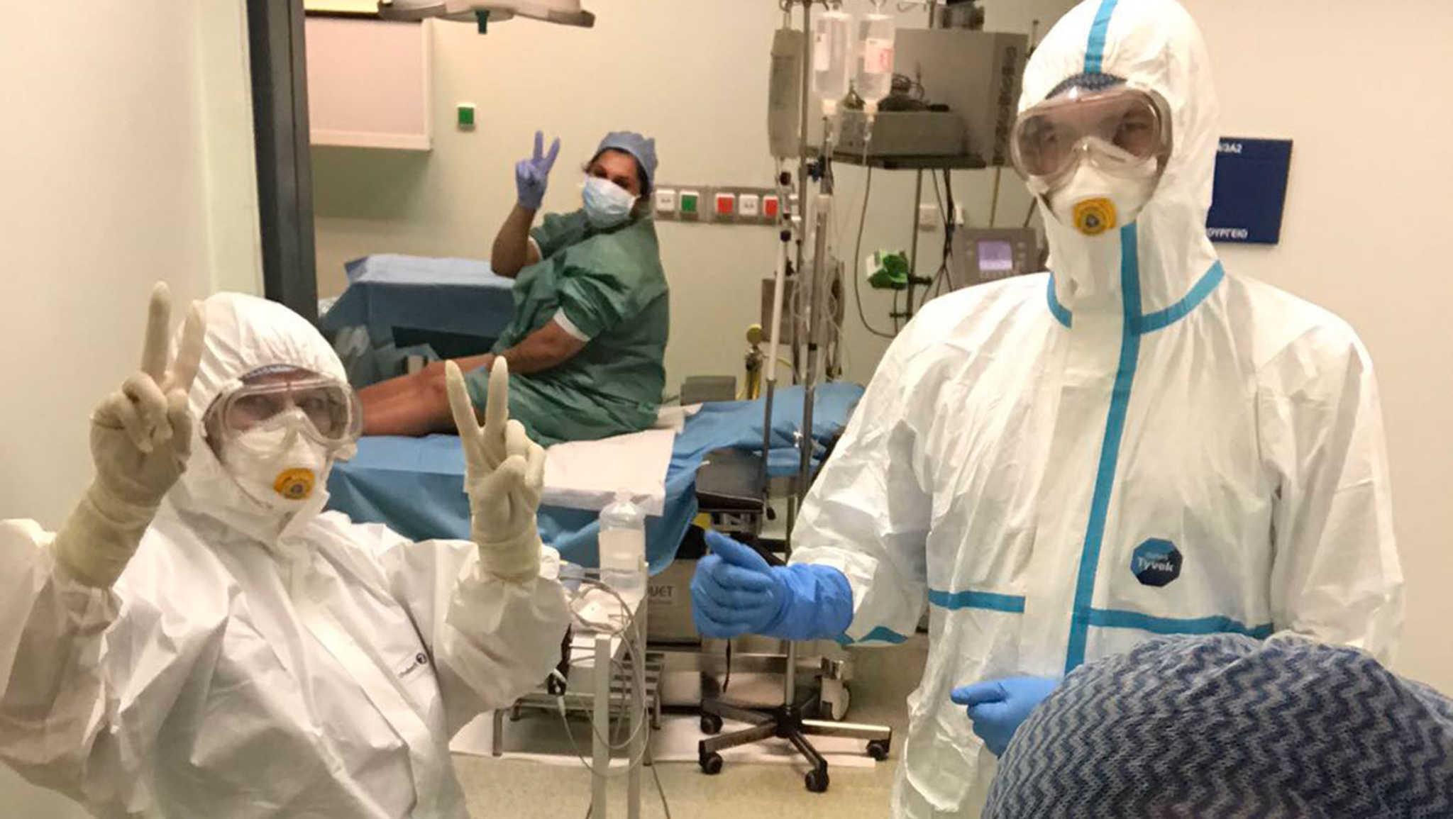 Στην καισαρική τομή συμμετείχε ομάδα γιατρών (γυναικολόγοι, αναισθησιολόγος, νεογνολόγος , προσωπικό από την επιτροπή λοιμώξεων του νοσοκομείου και του χειρουργείου). Η μητέρα και το νεογνό είναι σε άριστη κατάσταση.