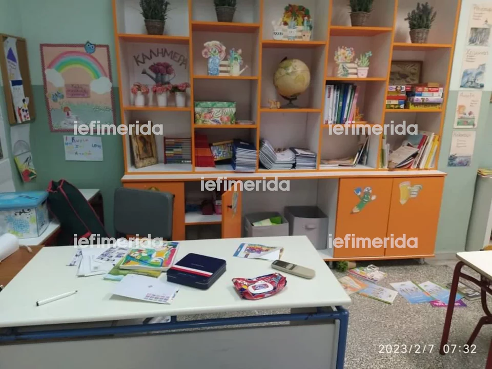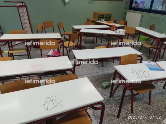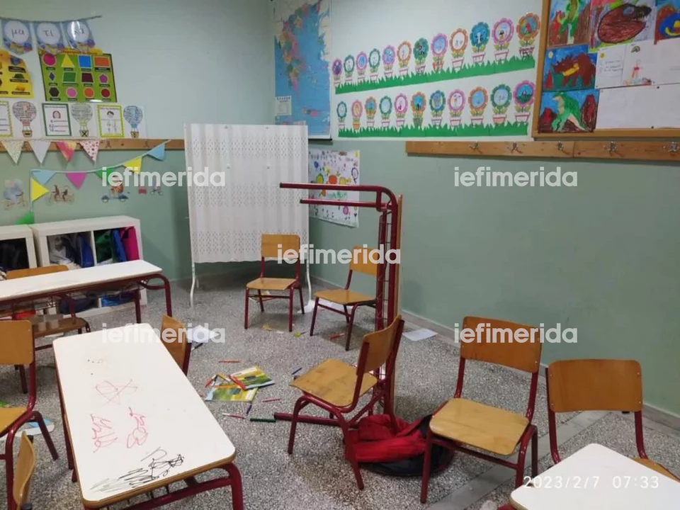 Ταραξίες εισέβαλαν στην τάξη του σχολείου αφήνοντας πίσω τους τις εικόνες που παρουσιάζει το iefimerida.gr.