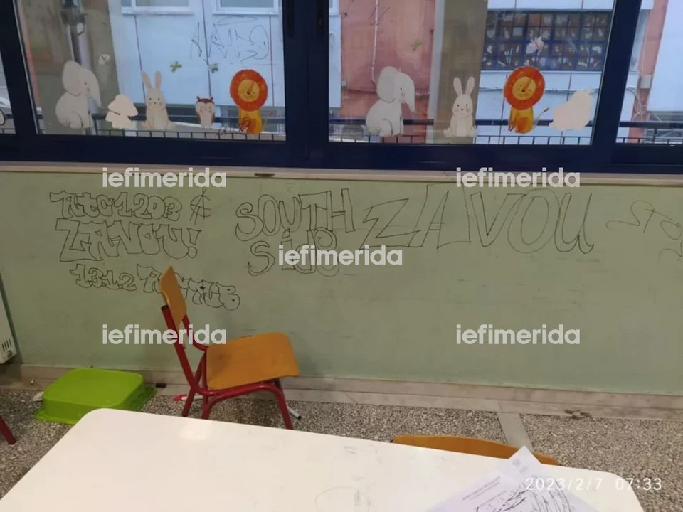 Οι εικόνες βανδαλισμού καταγράφηκαν σε αίθουσα δημοτικού σχολείου στο Πανόραμα της Βούλας.