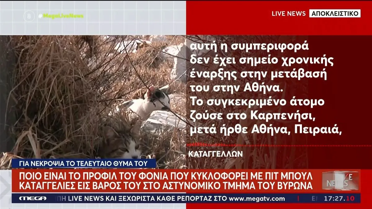«Αυτός χαίρεται με το να σκοτώνει ο σκύλος του γάτες, να τις κυνηγάει, να τις πιάνει και να τις σκοτώνει και τον εκπαιδεύει πάνω σε αυτό» τόνισε στο Mega μάρτυρας που κατήγγειλε το περιστατικό.