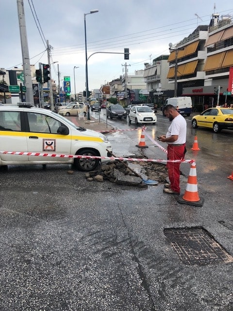 “Ένα τέτοιο απρόοπτο έγινε χθες, με την απογευματινή καταιγίδα μέσα στο κατακαλόκαιρο. Η βροχόπτωση ήταν πολύ έντονη και μία βλάβη που δημιουργήθηκε στο δίκτυο ακαθάρτων της ΕΥΔΑΠ προκάλεσε επικίνδυνη ρωγμή στο οδόστρωμα, στη διασταύρωση Αθανάτου και Γούναρη.