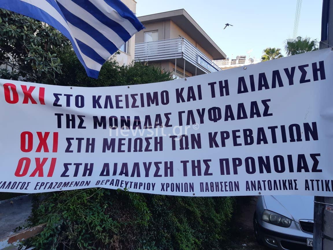 Εργαζόμενοι και τρόφιμοι έχουν συγκεντρωθεί από νωρίς το πρωί της Πέμπτης (24.10.2019) έξω από το κτίριο όπου φιλοξενούνται ηλικιωμένοι στη Γλυφάδα. Ζητούν να μην κλείσει η προνοιακή δομή, όπως προγραμματίζει η κυβέρνηση.