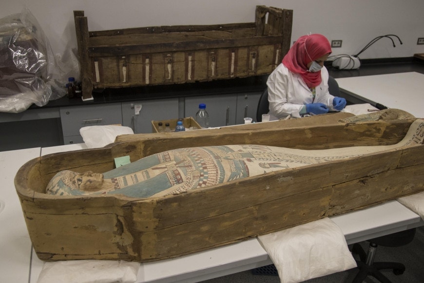 Η εργασία της αποκατάστασής της ξεκίνησε στα μέσα του Ιουλίου έπειτα από τη μεταφορά της σαρκοφάγου από την Κοιλάδα των Βασιλέων στο Λούξορ, στη νότιο Αίγυπτο, στο Μέγα Μουσείο του Καΐρου. «Παρουσιάζουμε ένα μοναδικό ιστορικό μνημείο, όχι μόνον για την Αίγυπτο, αλλά και για ολόκληρο τον κόσμο», δήλωσε ο υπουργός Αρχαιοτήτων Χάλεντ αλ Ενάνι, κατά τη διάρκεια της συνέντευξης Τύπου στο Μέγα Μουσείο της Αιγύπτου, κοντά στις πυραμίδες της Γκίζας.