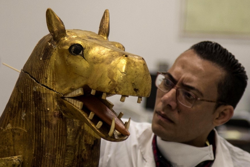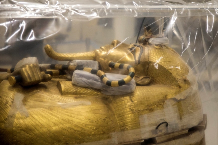 Η Αίγυπτος παρουσίασε σήμερα τη χρυσή σαρκοφάγο του Φαραώ Τουταγχαμών, που υποβάλλεται σε εργασίες αποκατάστασης για πρώτη φορά μετά την ανακάλυψή της το 1922.