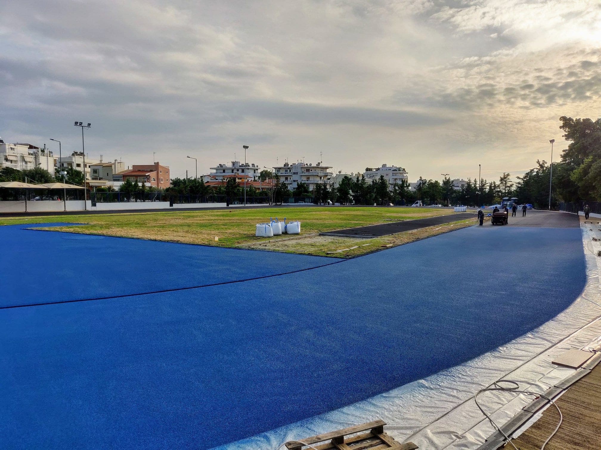 Ύστερα από πολλή πίεση και κόπο, το παλιό και φθαρμένο ταρτάν ξηλώθηκε, το νέο προδιαγραφών IAAF, τοποθετείται και πλήθος ακόμα εργασιών για την αναβάθμιση όλης της εγκατάστασης με τα πλέον σύγχρονα και ποιοτικά υλικά, τελειώνουν μέσα στις προσεχείς ημέρες.