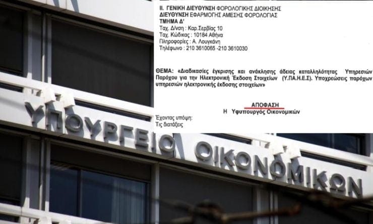 ΘΕΜΑ: «Διαδικασίες έγκρισης και ανάκλησης άδειας καταλληλότητας Υπηρεσιών Παρόχου για την Ηλεκτρονική Έκδοση Στοιχείων (Υ.ΠΑ.Η.Ε.Σ). Υποχρεώσεις παρόχων υπηρεσιών ηλεκτρονικής έκδοσης στοιχείων»