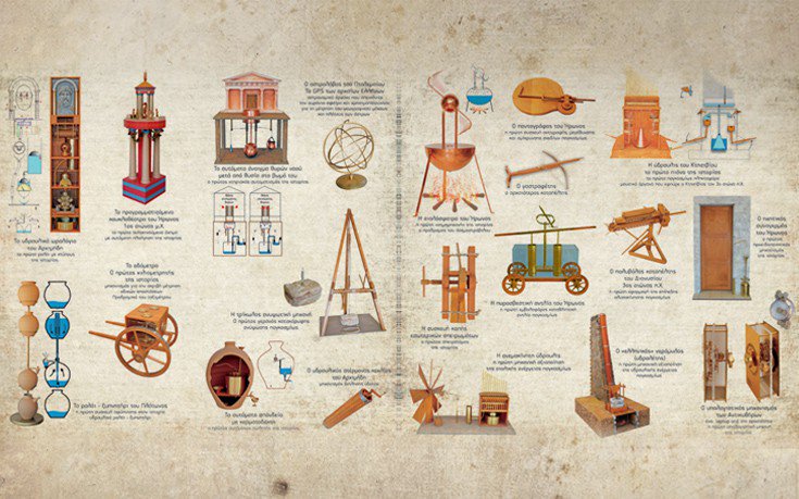 Περισσότερες από 300 εφευρέσεις των Ελλήνων είναι σήμερα γνωστές και όλες τους σε κάνουν να ξύνεις το κεφάλι σου για τα πώς και τα γιατί της ύπαρξής τους: από το «ρομπότ-υπηρέτρια» του Φίλωνα, τον υδραυλικό τηλέγραφο του Αινεία και τον «κινηματογράφο» του Ήρωνα μέχρι το αυτόματο ωρολόγιο του Κτησίβιου, τον αστρολάβο του Πτολεμαίου και τον αναλογικό υπολογιστή των Αντικυθήρων, οι έλληνες τεχνουργοί πάτησαν πάνω στους πρωτοπόρους μαθηματικούς, γεωγράφους, αστρονόμους και φιλοσόφους και σκάρωσαν εφευρέσεις που έμελλε να γίνουν τα δομικά χαρακτηριστικά της μοντέρνας τεχνολογίας.