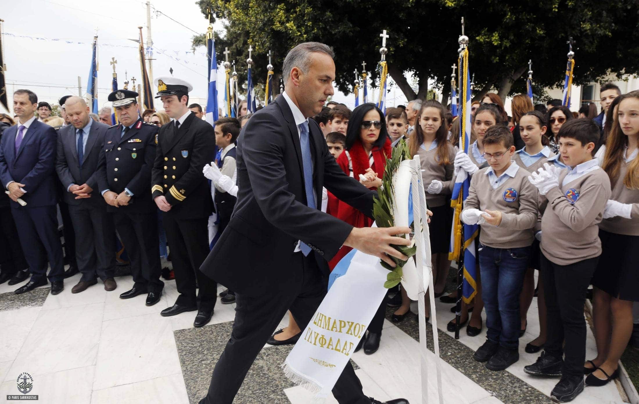Κατόπιν, στις 11 π.μ. πραγματοποιήθηκε η επιμνημόσυνη δέηση και η κατάθεση στεφάνων στο Μνημείο Εθνικής Αντίστασης (Παλαιό Δημαρχείο) από τους κ.κ. Δήμαρχο, Διευθυντή της Αστυνομίας, Λιμενικού, Προέδρους Παραρτημάτων Εθνικής Αντίστασης Γλυφάδας, Εκπροσώπους Δημοτικών Παρατάξεων, Εκπρόσωπο ΕΛΜΕ, Σύλλογο Δασκάλων και Νηπιαγωγών, Ένωση Γονέων και Κηδεμόνων και Τοπικών Οργανώσεων των Πολιτικών ομμάτων και νεολαίων και Σχολεία Πρωτοβάθμιας και Δευτεροβάθμιας Εκπαίδευσης.