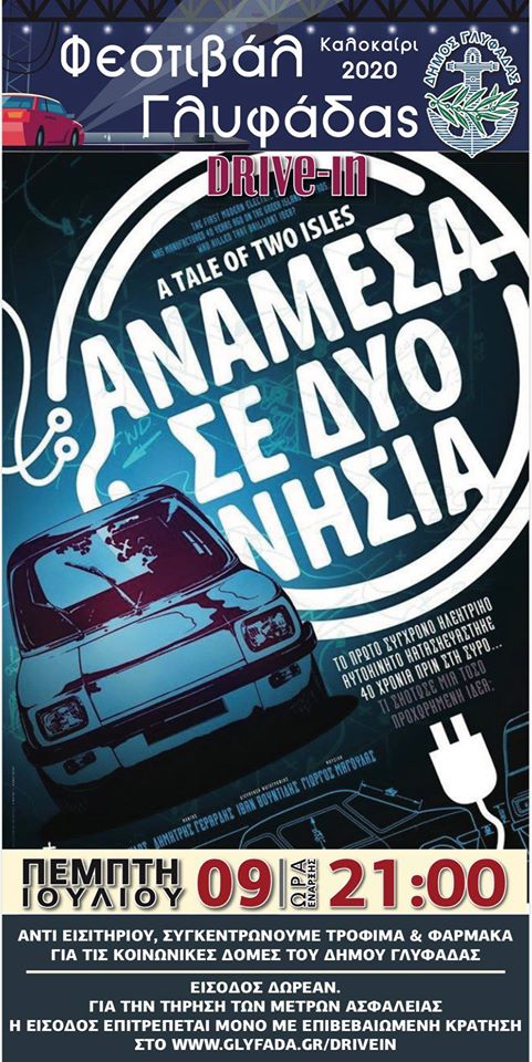 Οι θεατές θα απολαύσουν το υπέροχο ντοκιμαντέρ “Ανάμεσα σε δύο νησιά”, που αναφέρεται στο Enfield 8000, το ηλεκτρικό αυτοκίνητο της Σύρου, που είναι το πρώτο ηλεκτρικό αυτοκίνητο στον κόσμο. Πριν από την προβολή της ταινίας οι παρευρισκόμενοι θα θαυμάσουν από κοντά τα ηλεκτρικά αυτκίνητα της ελληνικής αγοράς.