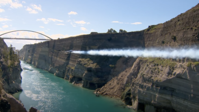 Οι αεροπορικές «ακροβατικές» επιδείξεις από μόνες τους είναι θέαμα που κόβει την ανάσα και συνήθως εκτελούνται με μαεστρία σε καθαρούς ουρανούς, χωρίς κοντινά φυσικά εμπόδια που θα μπορούσαν να αποδειχθούν μοιραία. Έχοντας αυτό κατά νου, υποκλινόμαστε στην τόλμη και τις ικανότητες του Péter Besenyei, του Ούγγρου πιλότου που διέσχισε με αεροσκάφος κατά μήκος τον Ισθμό της Κορίνθου.