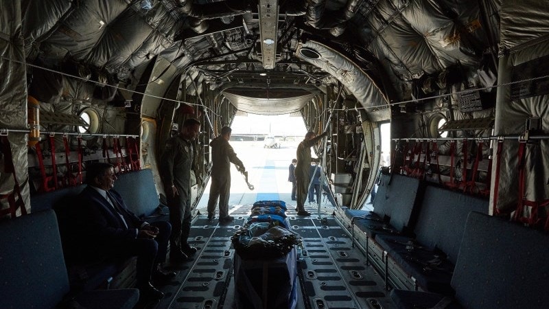 Σε μια από τις πιο συγκλονιστικές φωτογραφίες που έχουν κυκλοφορήσει, ο Μανούσος Γρυλλάκης φαίνεται να κάθεται μέσα στο C-130 που μετέφερε τον επίτιμο πρόεδρο της ΝΔ στην Κρήτη.