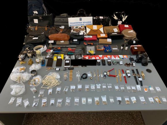 Στόχος τους έγιναν εννέα σπίτια δηµοφιλών ποδοσφαιριστών, οι περισσότεροι παίκτες της οµάδας του Ολυµπιακού, αλλά και η µεζονέτα εφοπλιστή. Από τα κλοπιµαία τους ξεχωρίζουν µία τσάντα µάρκας «Celine» από δέρµα πύθωνα αξίας 8.000 ευρώ, ένα ζευγάρι παπούτσια Louboutin µε δέρµα πύθωνα αξίας 2.000 ευρώ, µία ζώνη µάρκας Cartier µε δέρµα από κροκόδειλο µε λευκόχρυση πόρπη αξίας 4.000 ευρώ, ένα δαχτυλίδι Cartier αξίας 4.500 ευρώ και µία τσάντα Hermes Birkin αξίας 25.000 ευρώ.