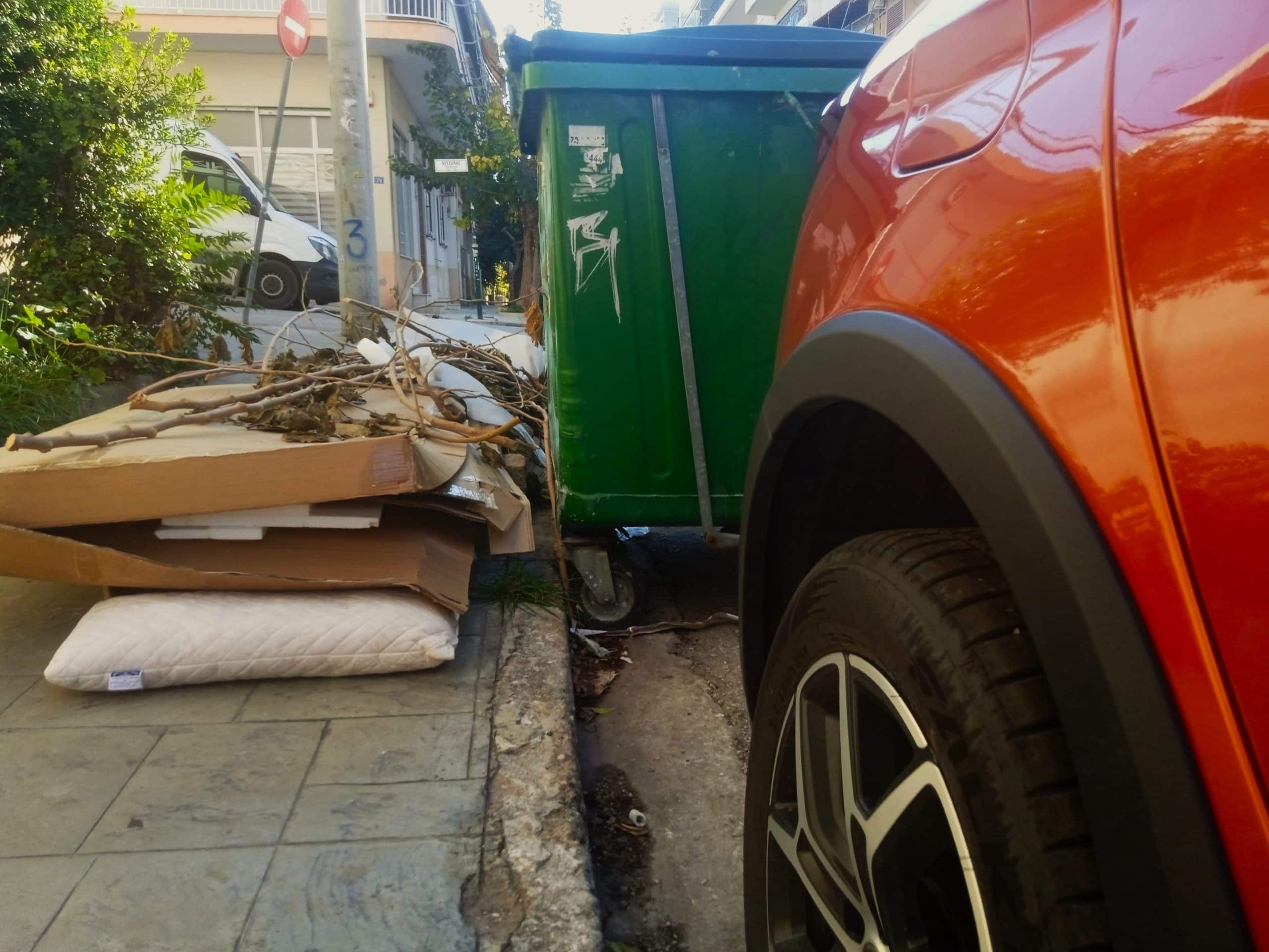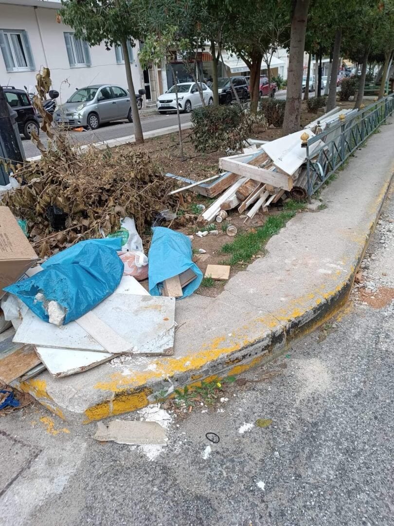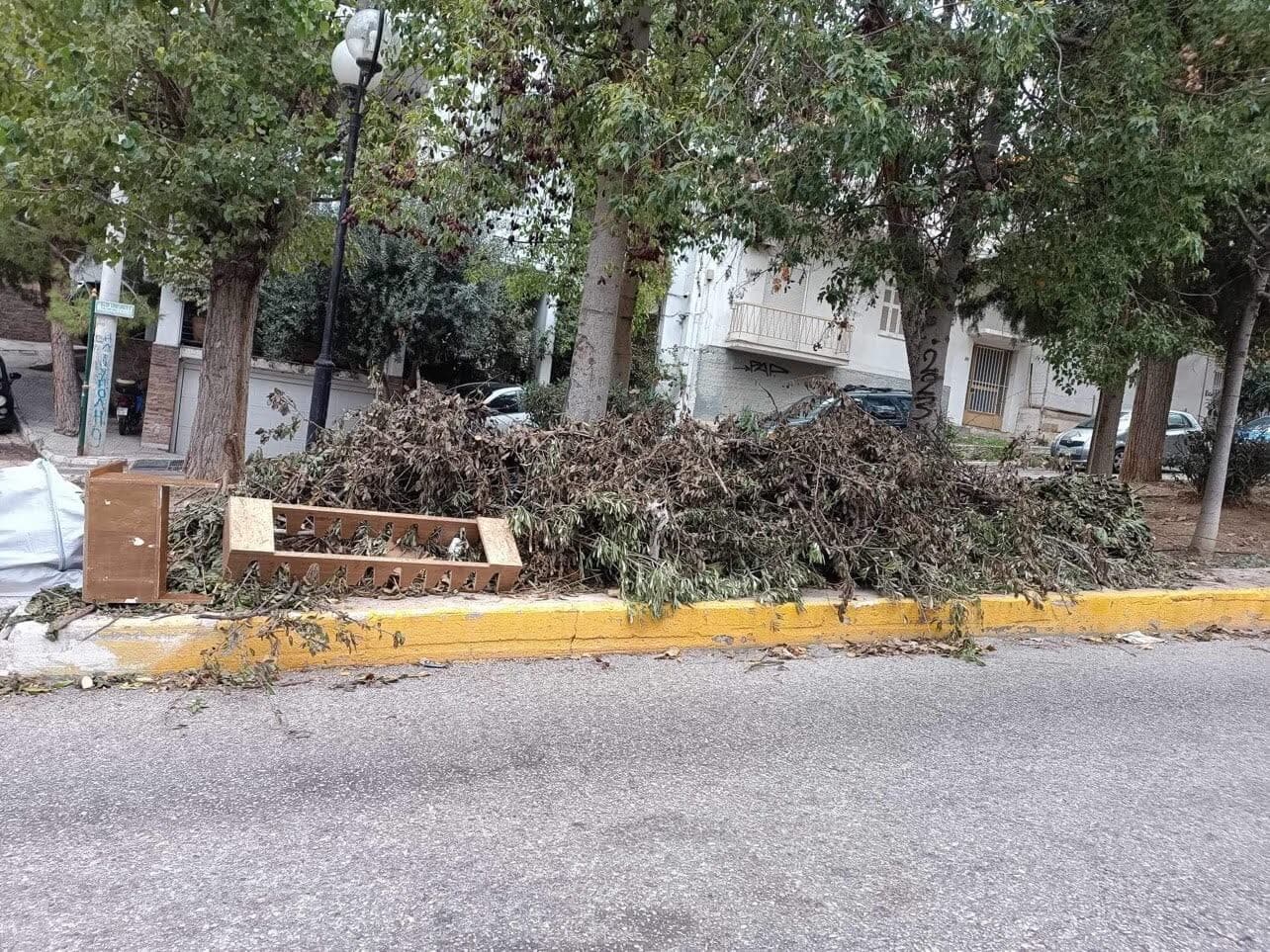 “Πλημμυρισμένα” εδώ και αρκετό χρονικό διάστημα είναι τα πεζοδρόμια της Ηλιούπολης και τα σημεία δίπλα στους κάδους απορριμμάτων, από κομμένα κλαδιά δένδρων.