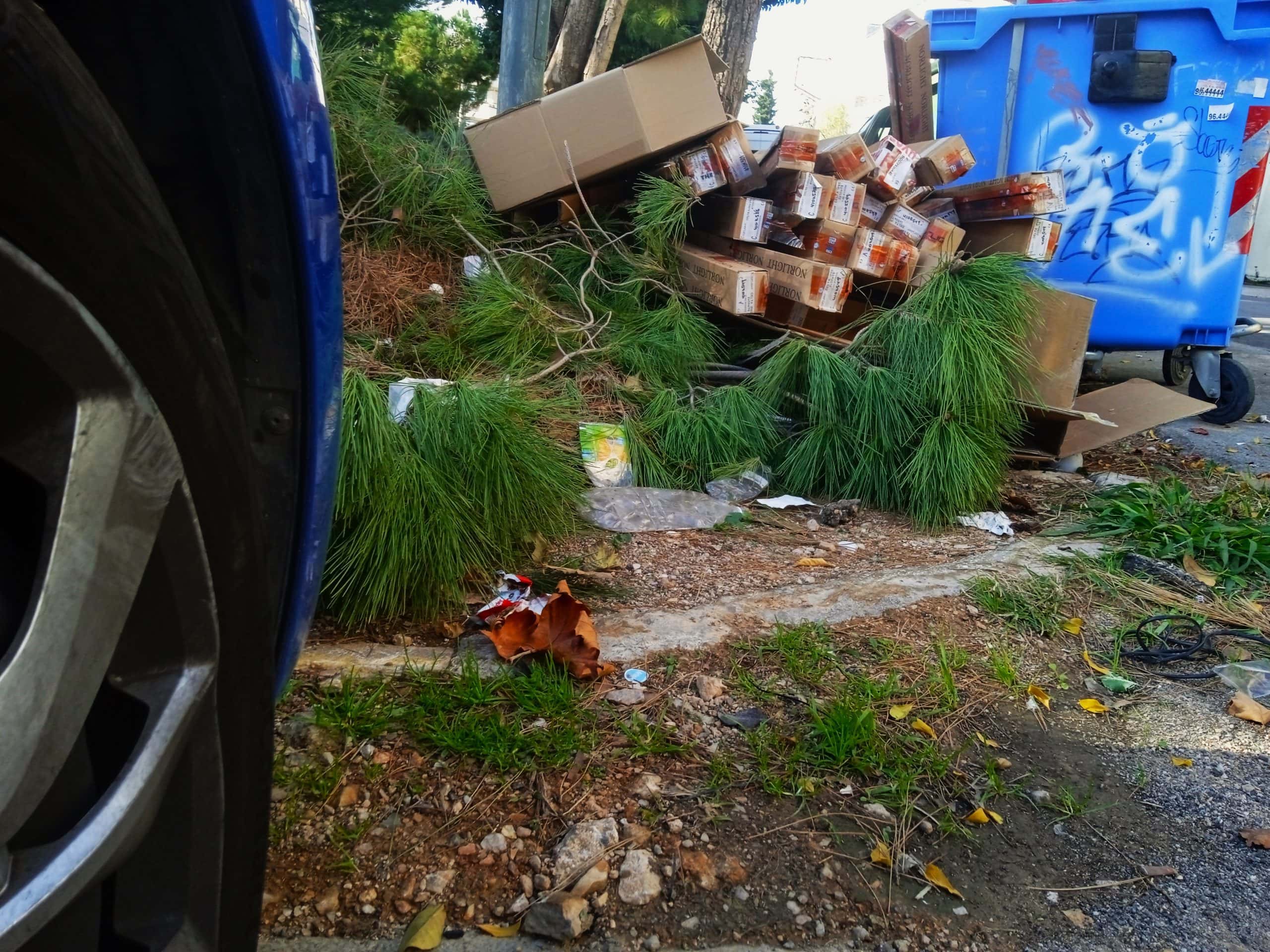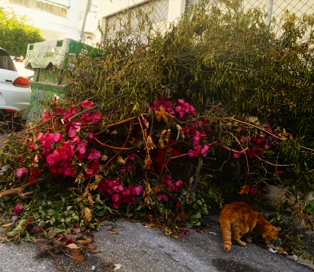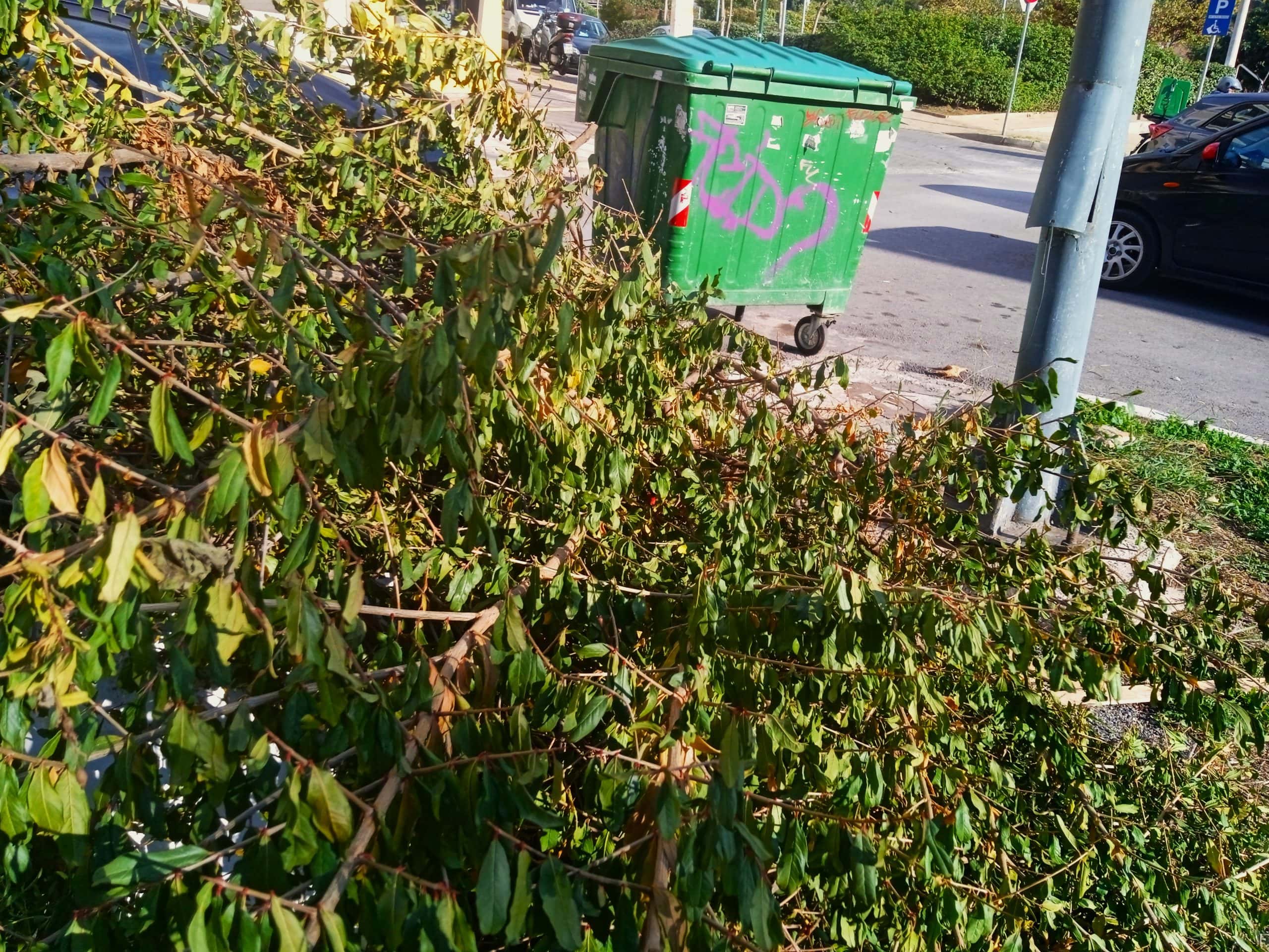 Δείτε τα ξεχειλισμένα από κομμένα κλαδιά πεζοδρόμια και σημεία στους κάδους απορριμμάτων στην Άνω Ηλιούπολη :