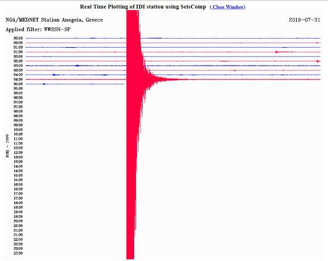 Δείτε πώς κατέγραψε τη σεισμική δόνηση ο σεισμογράφος του Εθνικού Αστεροσκοπείου Αθηνών που είναι εγκατεστημένος στα Ανώγεια:
