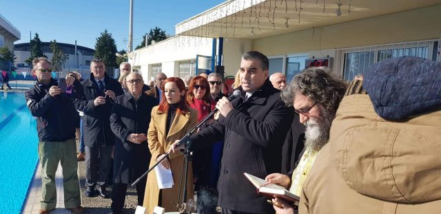 Αγιασμός των υδάτων σήμερα και η αρχή έγινε στον Ί.Ν η Κοίμηση της Θεοτόκου όπου παρουσία πλήθους κόσμου μας ευλόγησε ο πατέρας Δημήτριος αλλά υπήρξε συνέχεια στο κολυμβητήριο της πόλης μας.