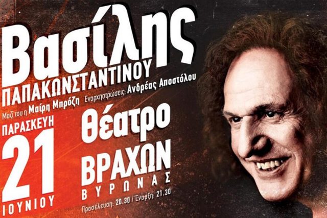 Αυθεντικός, συναισθηματικός, εκρηκτικός, ο Βασίλης μετράει «κοντά μισό αιώνα» πορείας, με αμέτρητους δίσκους, τεράστιες επιτυχίες και θρυλικές συναυλίες. Θρυλική αναμένεται να είναι και αυτή στο Θέατρο Βράχων Βύρωνα με τον Βασίλη να μας τραγουδάει, πέρα από μια επιλογή από τα αγαπημένα μας διαχρονικά τραγούδια-σταθμούς, και κομμάτια και από το νέο του δίσκο «Μπλέξαμε» που κυκλοφορεί αρχές Ιουνίου από την Rain Music, σε στίχους της Λίνας Δημοπούλου, του Οδυσσέα Ιωάννου και της Σάννυ Μπαλτζή με μουσική του ίδιου, του Χριστόφορου Κροκίδη και του Αντρέα Αποστόλου.