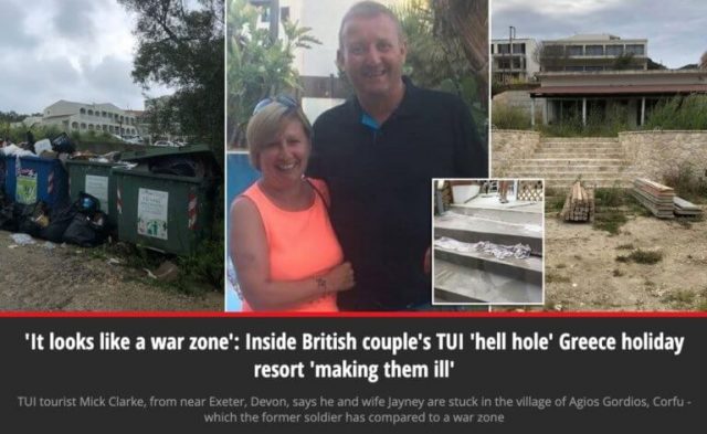 Γενεές δεκατέσσερις περνούν και με αποδείξεις Βρετανοί τουρίστες ξενοδοχειακό συγκρότημα στην Κέρκυρα. Η είδηση μάλιστα κάνει τον γύρο του κόσμου και είναι πρώτο θέμα στην βρετανική Mirror και όχι μόνο. Οι Βρετανοί τουρίστες μιλούν για «τρύπα της κολάσεως» για ξενοδοχείο που μοιάζει με εμπόλεμη ζώνη και άλλα πολλά.